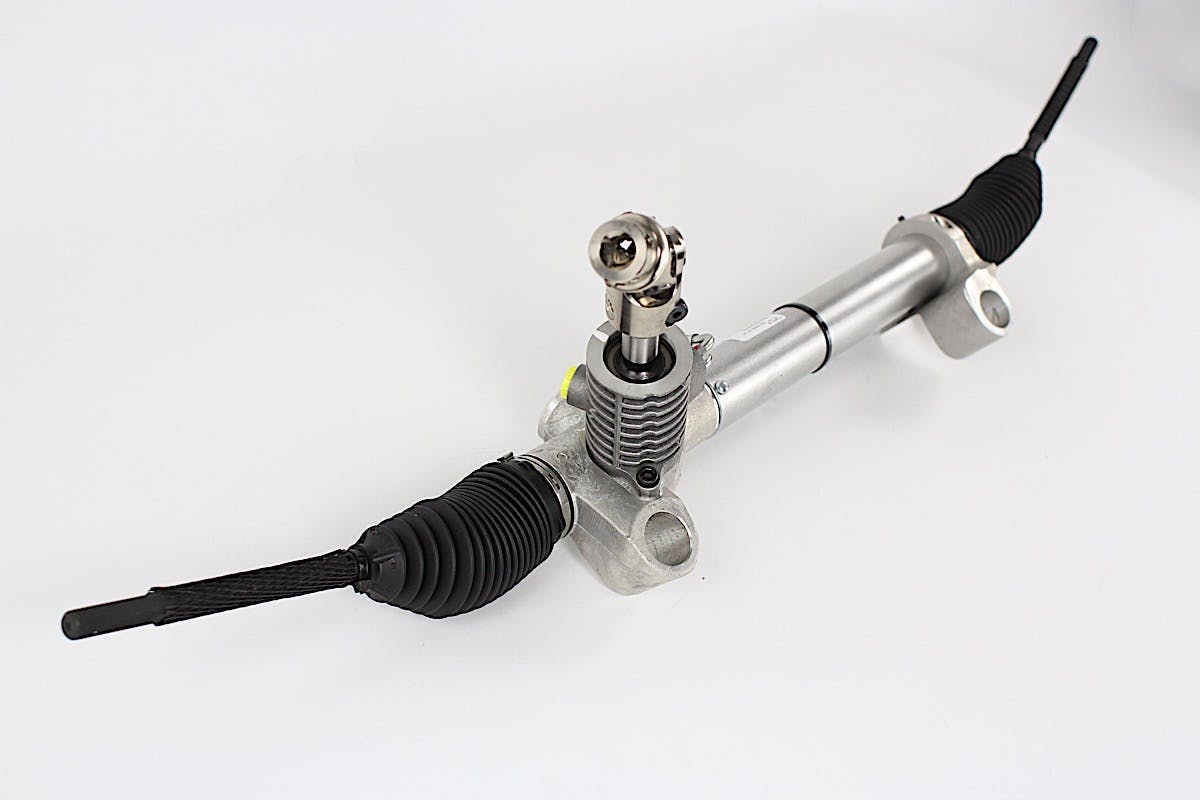 For our ’65 Plymouth Belvedere we opted for Flaming River’s Mustang II-style Power Rack with 16-inch mounting location and a plain powder coat finish (PN. FR40001PLN). Made from all new components rather than a rebuilt core, Flaming River’s rack offers over six inches of travel, which provides the full factory turning radius for classic street machine applications.