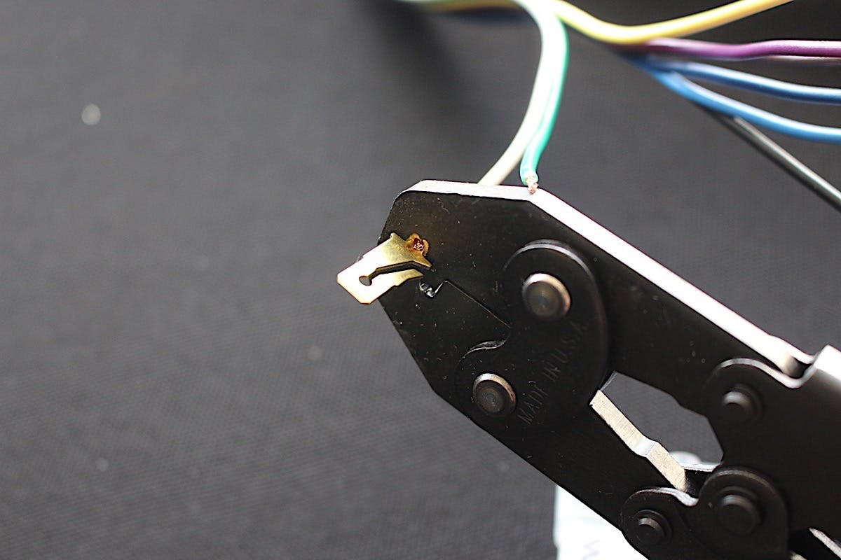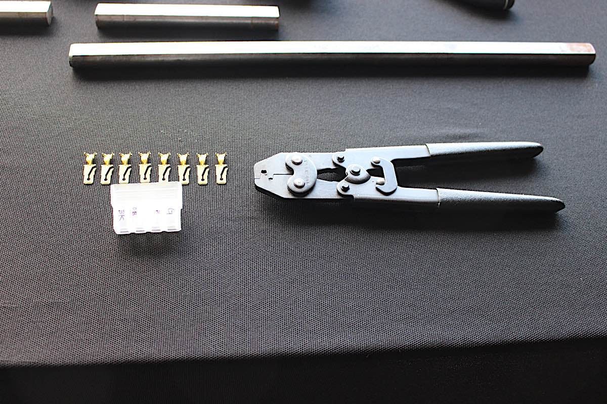 The column includes a wiring plug and connectors, but we chose to rewire it using an existing Packard 56 connector that we had on hand using wire crimps from Ron Francis, which saved us a lot of time and effort.