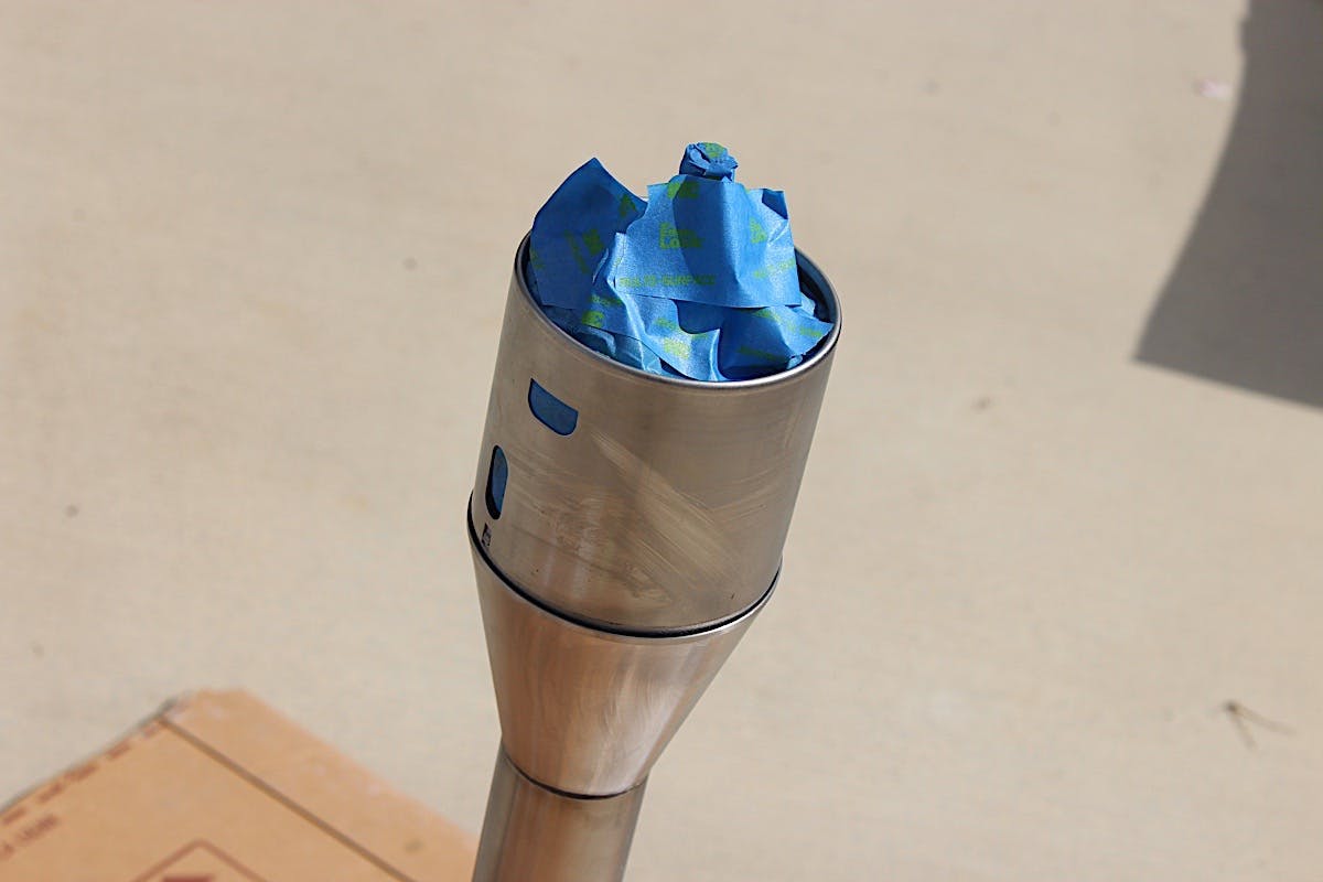 Measure from tip to tip of the shafts. You want to go from the tip of the column shaft to the tip of the steering gear shaft without overlapping and subtract 3.25 inches. -John Jennings, Flaming RiverNext we turned our attention to the steering column. For Mopars, Flaming River offers tilt and non-tilt columns in black powder coat, polished, or paintable finishes for general applications and 66-69 B-bodies. We went with a 32-inch floor shift-style tilt column with 2-inch OD (PN FR20006). We painted ours using a wood clamp to hold the column upright while applying coats to the full column after masking it off.