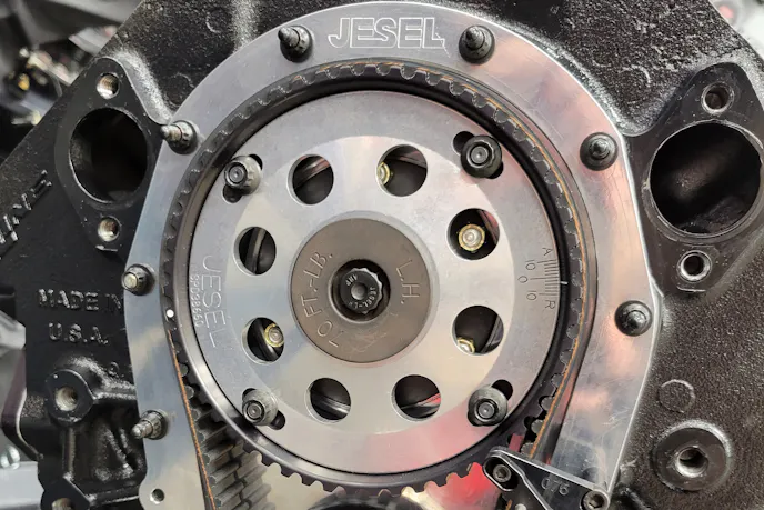A 632 doesn’t need gimmicks; it needs smart cam selection. Cam Motion supplied a custom hydraulic roller with .729/.708-inch lift and 264/278 degrees of duration at .050, paired to a 113 LSA. Valve control comes from Elite Race dual springs, Johnson hydraulic rollers, and Manton tapered pushrods. Everything is actuated through Jesel shaft rockers and a belt drive, maintaining precise timing and keeping the engine stable at high RPM for repeatable power on the drag strip.