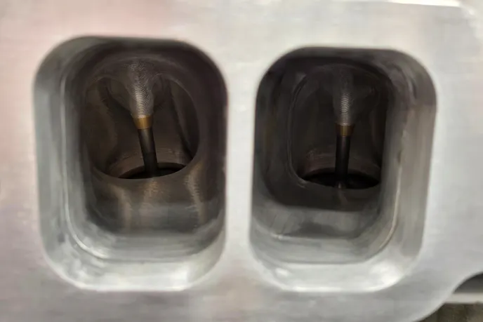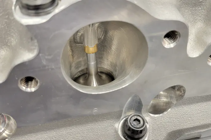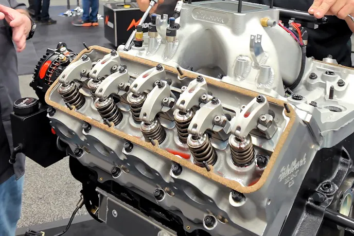 To hold serious cylinder pressure, the short-block is capped with Cometic MLS gaskets and secured with ARP Pro Series studs. On top, Edelbrock DR-17 heads drop in with 17-degree valve angles and 425cc intake runners. Chambers measure just over 100cc, keeping a streetable 10.7:1 compression ratio. Pat Musi’s CNC porting maximizes airflow for naturally aspirated four-digit horsepower, while Ferrea titanium intake and Inconel exhaust valves handle lift and heat with surgical precision — lightweight where it counts, durable where it matters.