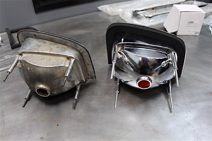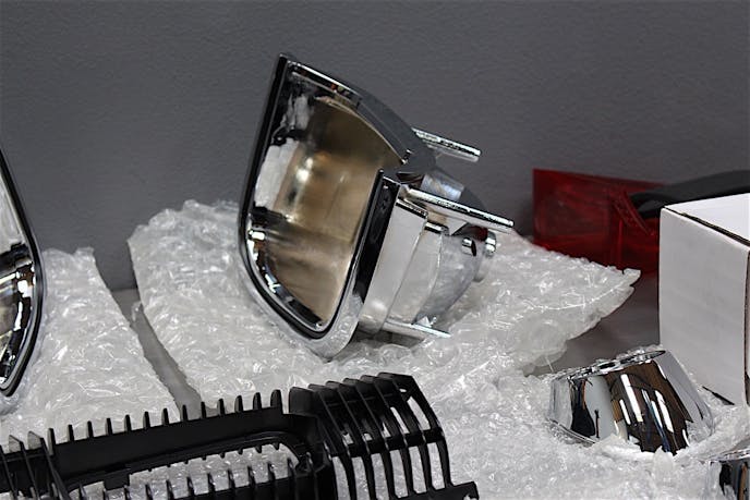 Pitted chrome, cracked or scratched lenses, and bent trim pieces sometimes end up being beyond our own abilities to repair, and that means sending them out to a specialist to repair. Many shops that restore parts will tell you that if you restore your parts one at a time, the price is exponentially higher than if you send in a complete order – and that’s a big expense to make all at once.