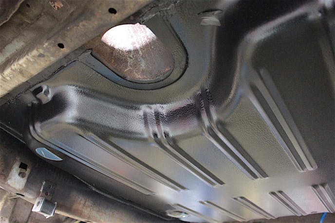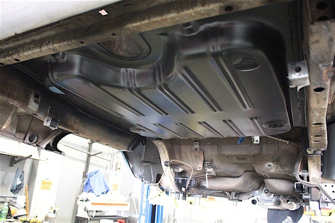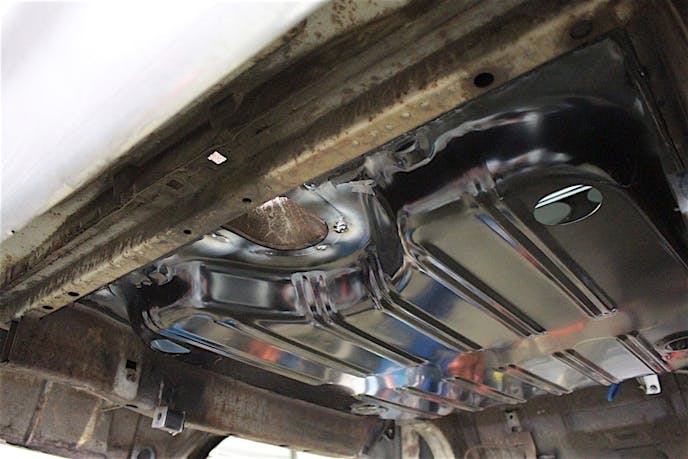 Now with the new pan and the fuel tank back in place, we’re that much closer to getting the car back on the road – and back out on the track.