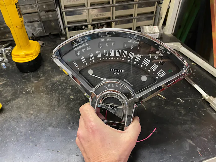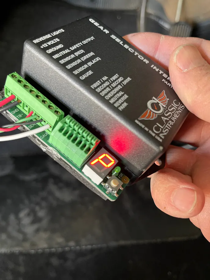 Updating the original gear indicator is an option to consider. Our ’56 uses a column shifter to pull its TH-350 into gear so we opted for the electronic selector that CI offers. The system features a small interface box that receives the gear position signal from a potentiometer that you mount on the trans. It takes a little extra work but is easily programmed for the number of gears and each gear position, but it’s a nice feature to have working again.