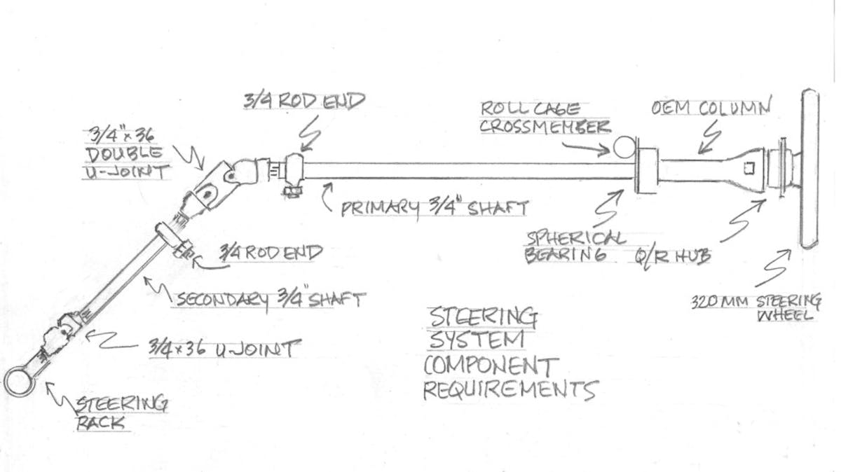 In planning a steering system, it’s helpful to sketch out which components will be utilized. From this starting point, the actual shaft lengths and pieces can be identified by Borgeson for easy ordering.