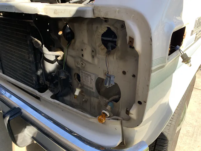 I started by removing the headlight trim rings, bezels, grill, and bumper.
