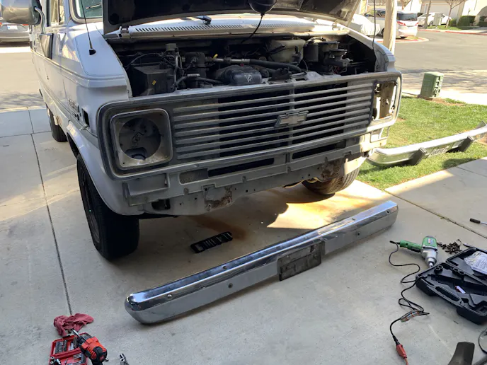 After about 16 hours of hard work, I had a whole new front end for my van!
