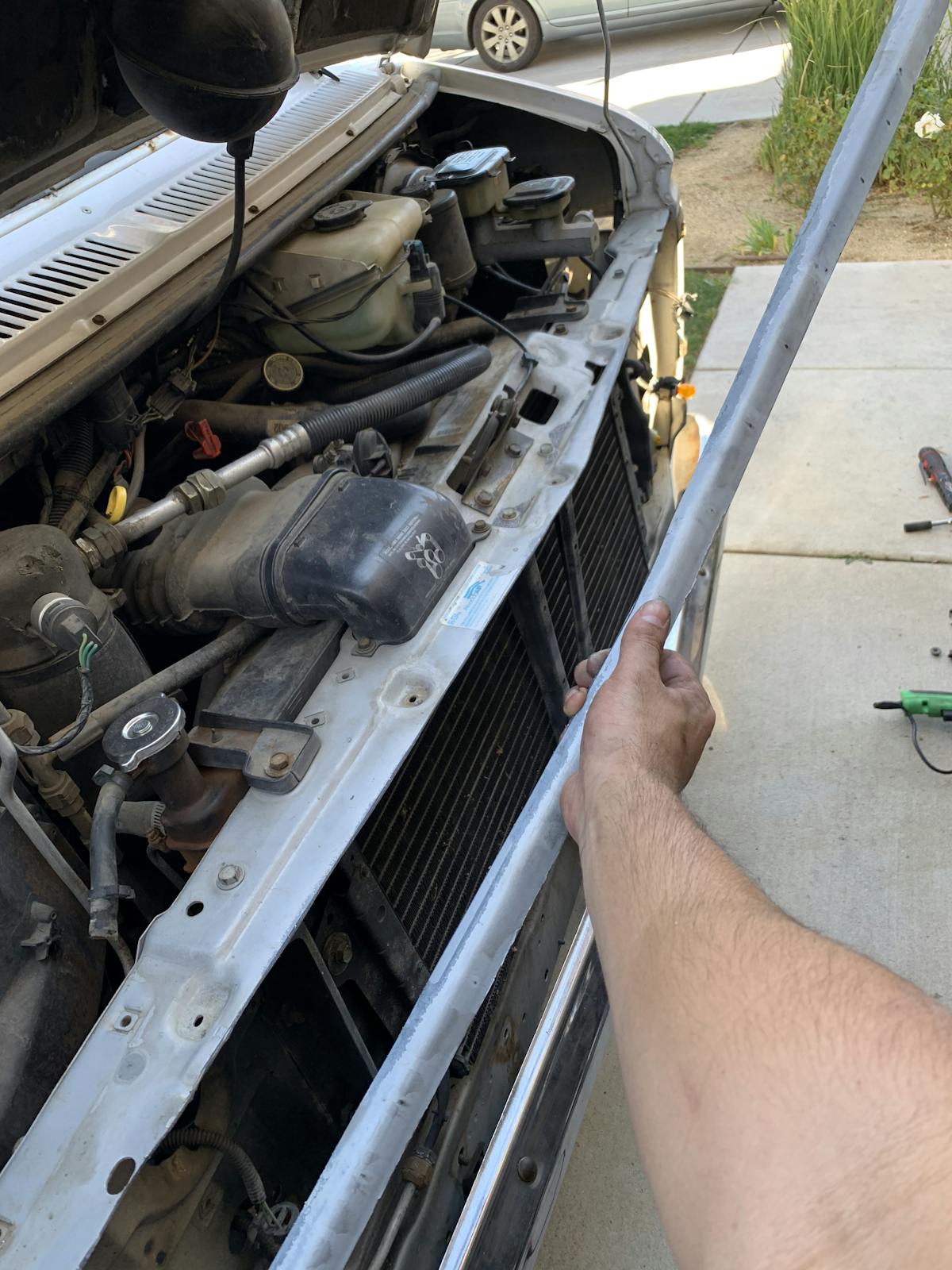 Once the original front end was removed, I had room to test fit the new grill. I knew there would be some trimming of the radiator support because of Wally’s guidance. Fortunately for me, he showed me a pretty trick way to know exactly where to lay down the cutoff wheel.