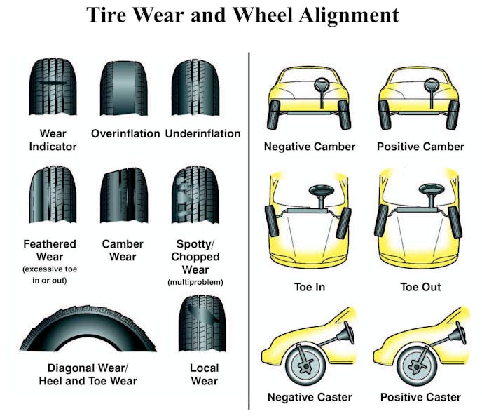 Two ways to notice your car has camber-alignment issues are: the vehicle pulls to one side (low tire pressure can also cause this) and uneven treadwear across the tread. Camber is easy to check with the alignment kit from Summit.