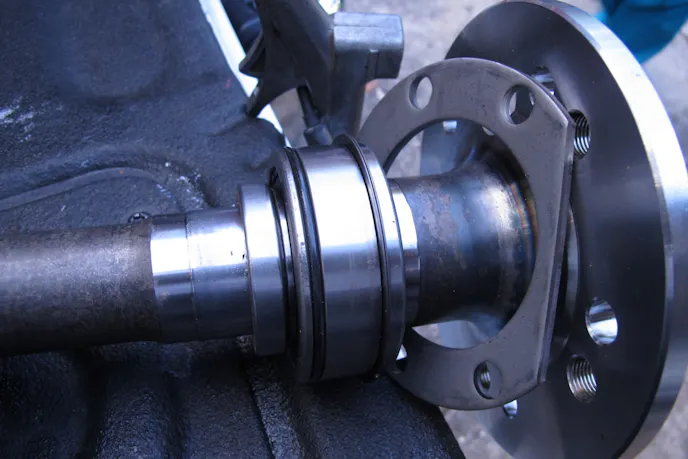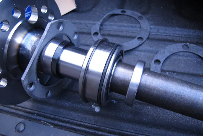 The OE-style, tapered wheel bearings Mopar used (left), while ok, do have a few drawbacks. For starters, the bearing is flipped around backward, so the race is captive between it and the axle flange. This means the bearing must float in the housing end and this arrangement requires the use of an adjuster, thrust block, or thrust pin between the axles. Also, beaded steel and foam gaskets don’t keep water from entering the housing end and into the non-sealed wheel bearing. Most of these problems can be avoided by installing non-adjustable “green” bearings (right).