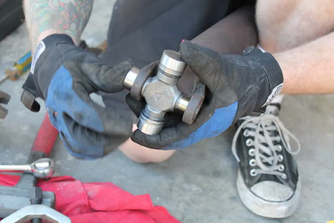 We removed the driveshaft and used basic tools to press the old joint out and press the new one in place. The caps are a different size, as are the c-clips, so be sure to use the proper ones for your installation.