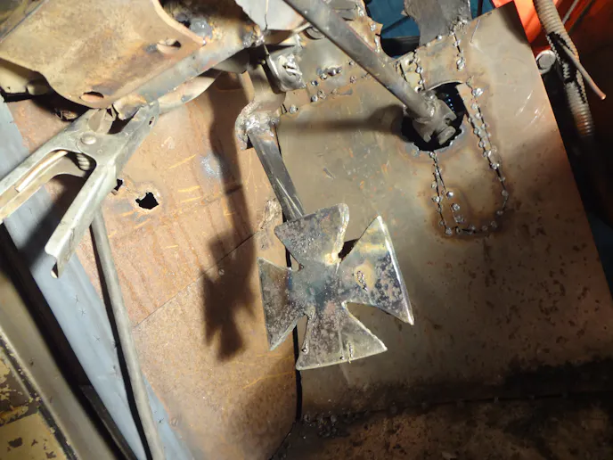 The hoop to mount it can be a thick heavy washer welded to it. Once this newly made assembly is tacked together, and I did say tacked – not welded – then place it in the vice to test the pedal travel with plunger. If it works great, weld it together. If not, grind the tacks and make adjustments where necessary.
