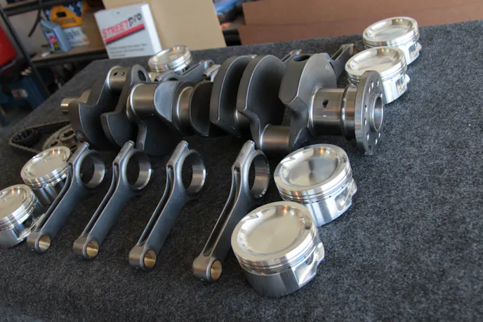 Before ordering a rotating assembly, figure out what you are aiming for with regards to horsepower. It’s also important to plan how you’re going to get to that figure: naturally aspirated, or what Tom calls “artificial air” – also known as boost. We laid out our plans for the car with regards to street and on-track performance, and came up with a horsepower figure we were aiming for.