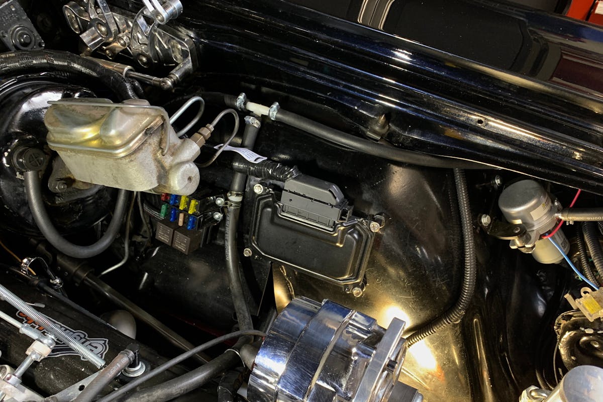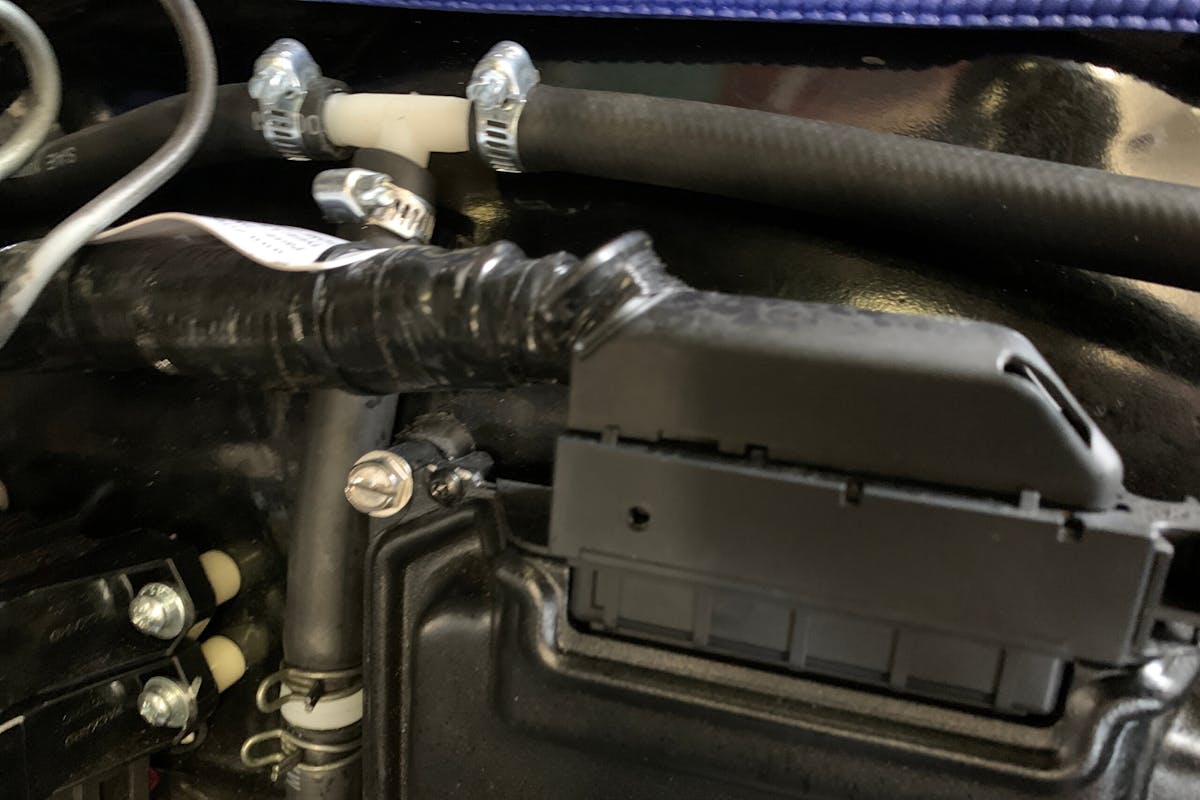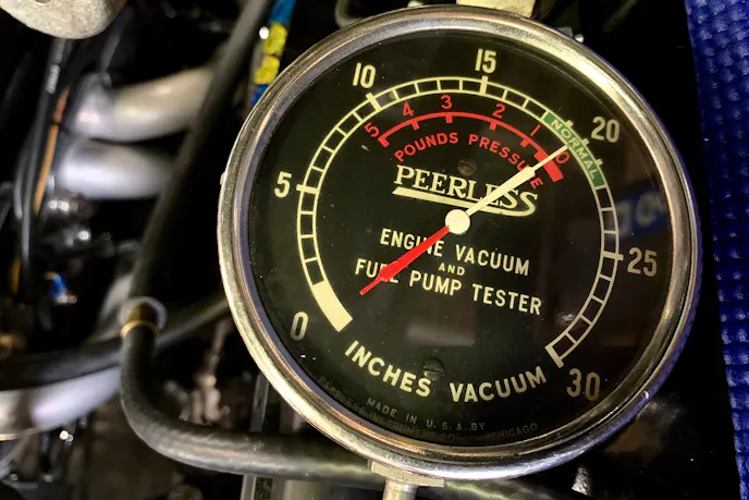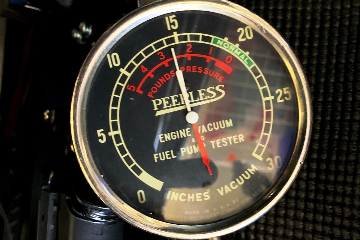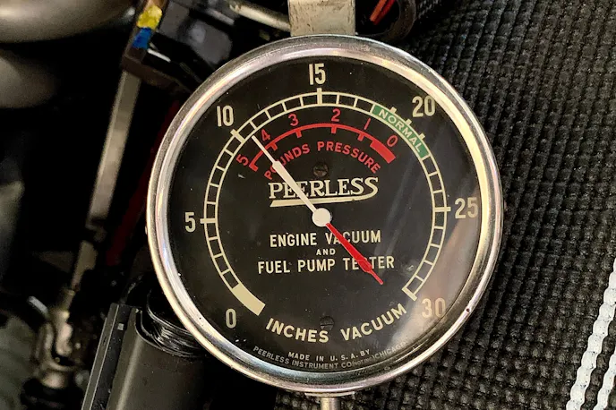 Before the electric vacuum pump, pressure to the booster was a meager 11 in/Hg at idle and 14.5 at 2,500 rpm —not nearly enough for a modern power brake system. After the install, vacuum was a steady 20 in/Hg. After shutting the car and letting it sit for three hours, Ed hooked up the vacuum gauge and it reported 20 in/Hg — no loss of pressure whatsoever.