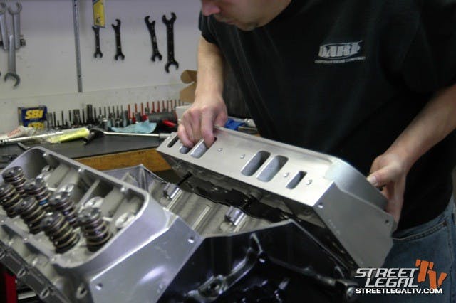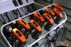 The heads were completed by a brace of Harland Sharp 1.7:1 ratio Diamond series stud mount rockers. These arms are designed for standard 7/16-inch studs, and are profiled to eliminate as much as 100 grams of moving mass from the valvetrain. To improve valvetrain stability, Dart added their BBC stud girdles, which clamp extra-long adjustment nuts between rigid aluminum bars. The result is deflection resistance similar to a shaft-mount rocker arm setup, without the heart-attack-inducing price tag. With the heads done, everything was capped off with a pair of Dart cast aluminum “inverted flange” valve covers.