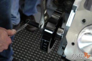 On a related note, the clear white timing marks on the Professional Products PowerForce Plus harmonic damper made it easy to set the timing. In addition to the regular timing hash marks, engraved lines every 90 degrees aid tasks like setting valve lash, and the damper is SFI 18.1-rated for safety at the drag strip.