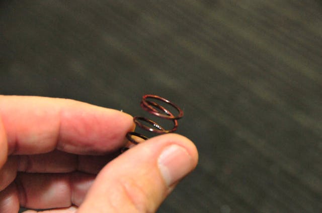 The solenoid spring is modified; the end is sanded to assure the end is flat and is seated accurately. This is a simple yet important step to assure reliable operation of the starter.
