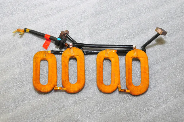 Because some race starters require reverse rotation, the coil housing must be dissembled and the coil must be reconfigured for reverse flow electricity. With the reconfiguration complete, the coil unit is reassembled.