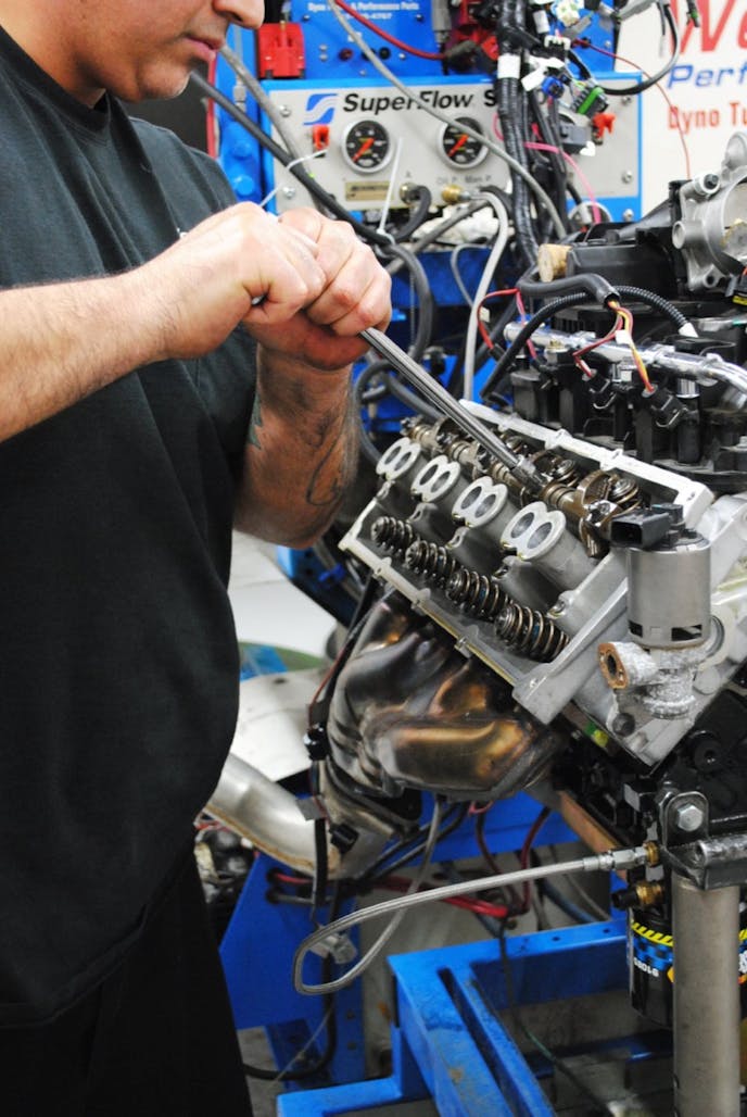 Run in stock trim with the spring upgrade and SRT8 exhaust manifolds, the stock Hemi produced 385 hp and 421 lb-ft of torque. That the Hemi produced more torque than horsepower was a sure indication of the mild cam timing, especially given the impressive head flow. Hardly a race cam, the 273H-13 offered impressive power gains. Swapping the cam netted an increase of 65 horsepower (peak to peak) and an additional 100 horsepower at 6,300 rpm. For stock motors looking for a sizable torque gains while maintaining idle quality, check out the smaller 260H-13 cam, but we plan on stepping up to ported heads and even a stroker short block, so we opted for the more aggressive 273H-13.