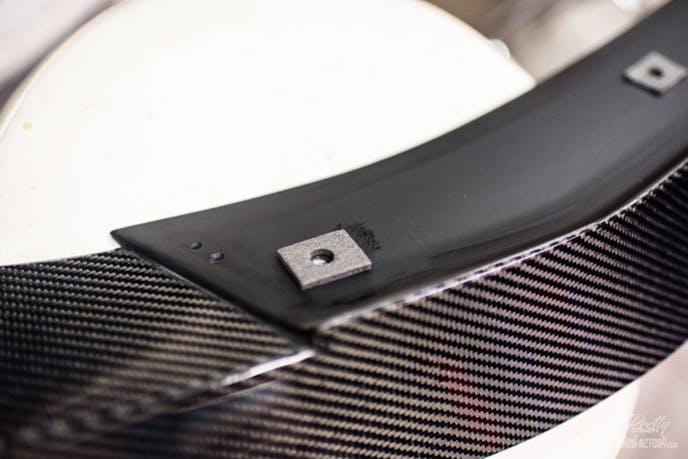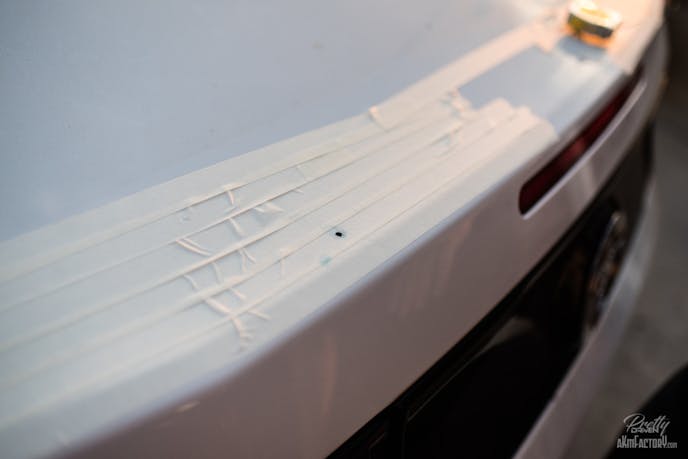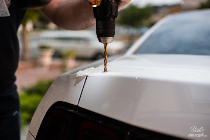 We measured everything five times, drilled once, and still missed the mark. We aren’t sure if that due to a flaw in our initial process or if it is a result of poor fitment. The spoiler fitment doesn’t align with the body just enough to mess with measurements and make the placement questionable. Not everything is created equally, so it is always good to check and measure throughout the process.