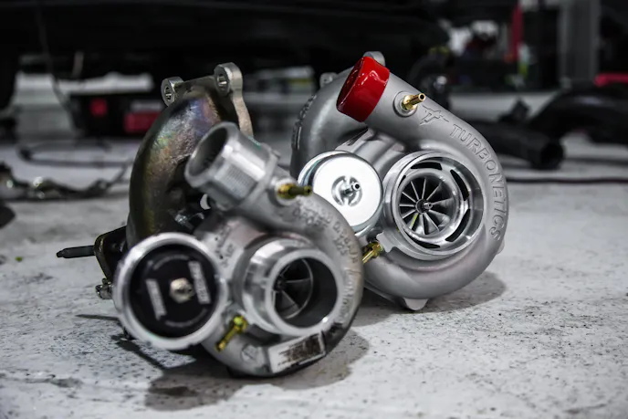 The turbo pulls hard throughout the entire RPM range and provides over 1000 RPM of reduced spool time assisted by the dual ball bearing, billet compressor wheel, and twin-scroll design.