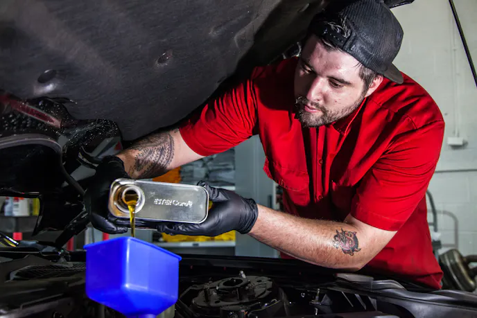 Before you start the car, take this time to perform an oil change. Dive under the car to remove your old oil filter and drain plug. After a few minutes of draining your oil, install a new OEM oil filter, make sure to put a thin layer of oil on the filter to make removal easy.