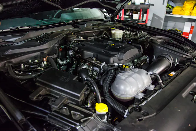 Don’t be alarmed; your Mustang will smoke. That does not mean the world is ending. You will see visible smoke from the turbine and exhaust because of an oil coated residue that prevents rust. Yes, it will smell but stay calm and let it burn off. With a flashlight, check your turbocharger for leaks. Check for engine codes and if all is good, go for a test drive.