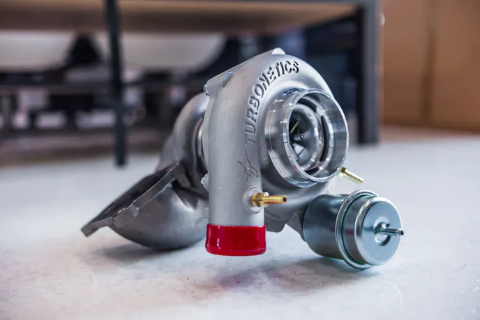 Here is the actual Turbonetics NX2 “drop-in” turbocharger for his 2017 Ford Mustang Ecoboost.