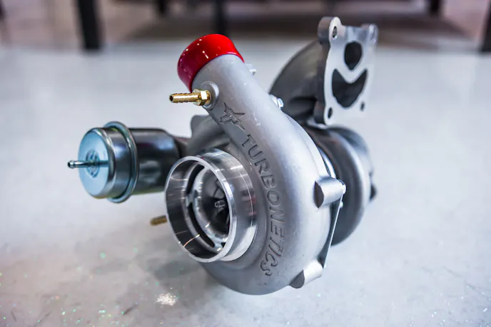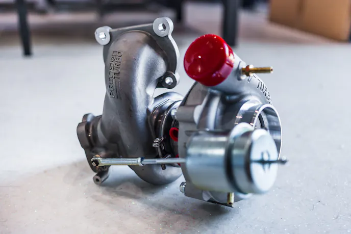 The turbo pulls hard throughout the entire RPM range and provides over 1000 RPM of reduced spool time assisted by the dual ball bearing, billet compressor wheel, and twin-scroll design.