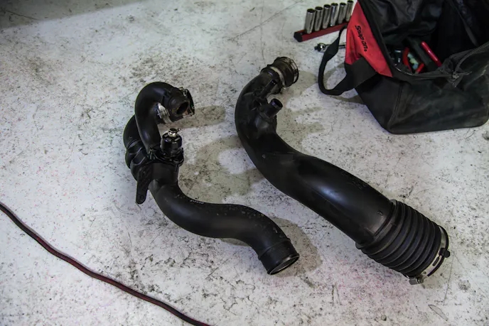 To start, make sure the car is completely cooled off, if not, I mean you’re more than welcome to find out what happens and drop a comment on this post. Remove the stock intake and hot-side charge pipe.