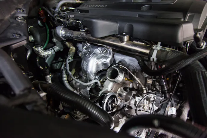 Connect your O2 sensor and get ready for the final pieces. Install the provided intake adaptor followed by your modified or stock intake tube. Attach your OEM or modified charge piping to the turbo and intercooler. From there you are ready to attach all your vacuum lines.
