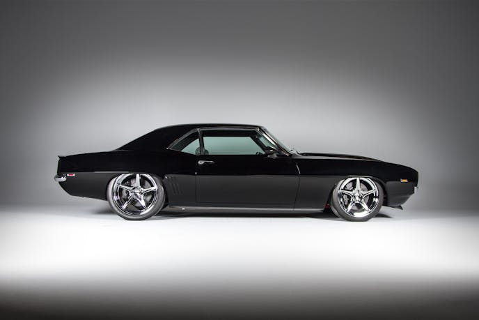 Tucker has built multiple cars for Stuart Adams, a friend of his who gave him and his crew a simple directive — build it in Detroit Speed style with modern performance, and an eloquent look inside and out. “We wanted the outside to look like pure ‘69 Camaro, but very refined, and with many subtle body modifications,” Tucker says. “On the inside, we wanted the car to take on a high-end European, AMG-type feel.”