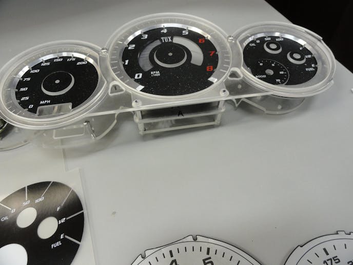 “Because some of the accessory gauges overlapped and were not in full circles, some of the sweeps were difficult for them to get everything we wanted, as well as the resolution we needed. John screen-printed the graphics on the gauge faces; it’s crazy how much detail he even put into it from his side.”