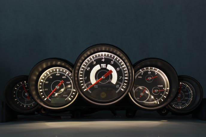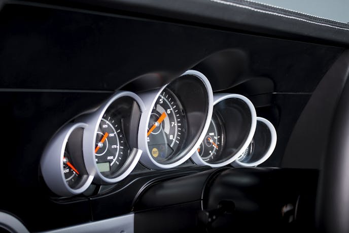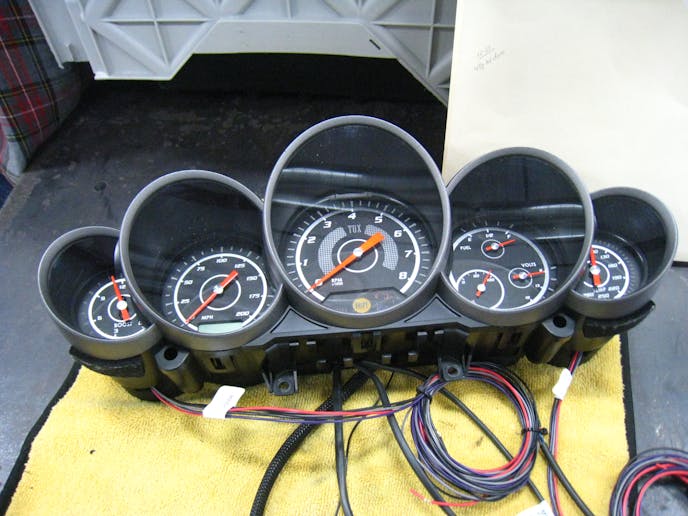 Tucker and Classic Instruments sweated the details, wanting to make sure the finished cluster ended up looking at home in a high-end European sports car, not a street rod or vintage muscle car. They fine-tuned the look of the icons, the weight and shape of the pointers (even down to the shade of orange paint on them), and the machined-aluminum pivot center. A crosshatch background for the tachometer finished off the package.