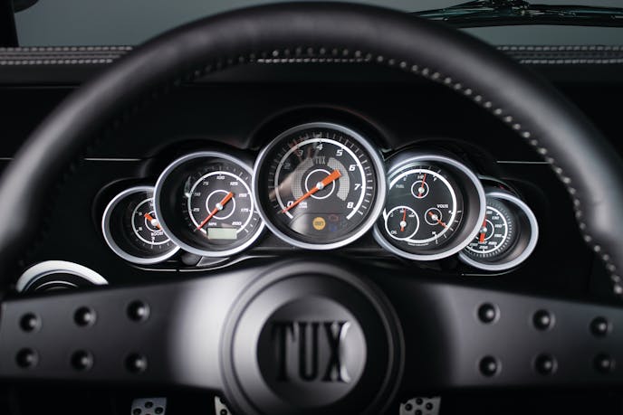 As Tucker began planning TUX’s interior, about midway through the build, he called upon Classic Instruments to make a custom cluster to not only fit his vision for the car, but also one to be functional and reliable.