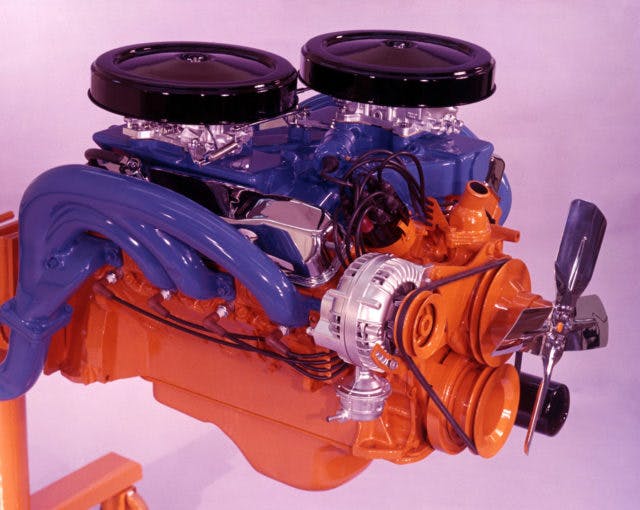 A wide range of configurations of the 413 were released during its long run resulting in many power outputs, with the top dog being the 1962 iteration featuring two 4-barrel carbs and a 10.1 compression ratio. Its output was a prodigious 380 hp at 5,000 rpm and an astonishing 525 lb-ft at 2800 rpm.