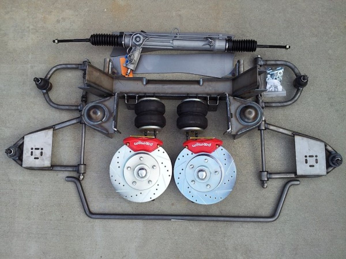 Options include a power steering rack upgrade for $100 and double-convoluted Firestone air bags for about $400. With free shipping, the whole crossmember kit including the above options retails for approximately $2,600.