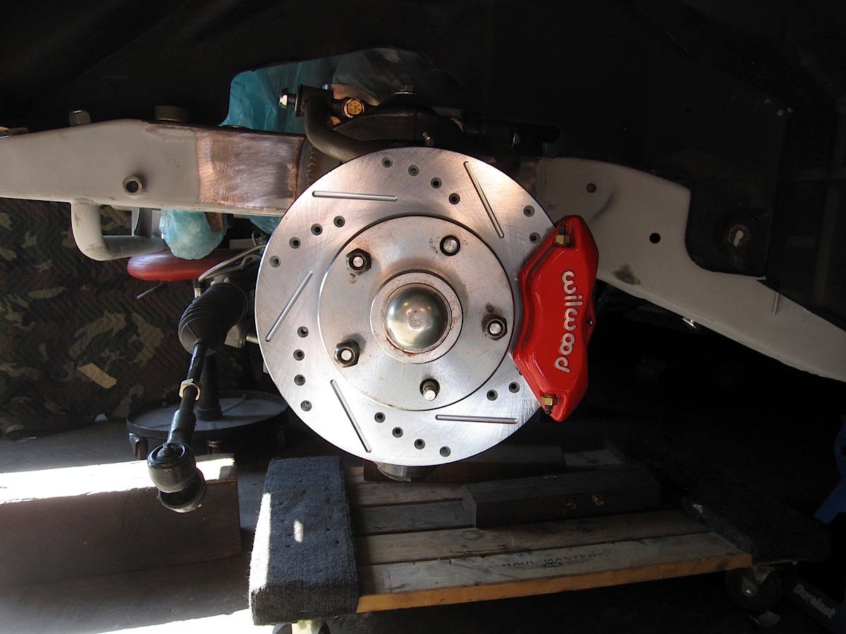 Basic brakes for this crossmember are 11-inch plain rotors with a 4 1/2 or 4 3/4 wheel bolt pattern. Upgrades include drilled and slotted rotors with four-piston Wilwood calipers, or larger 12, 13 or 14-inch rotors and Wilwood calipers. It all depends upon whether you are using an open spoke wheel where cosmetics are a consideration, or engine performance demands performance brakes.