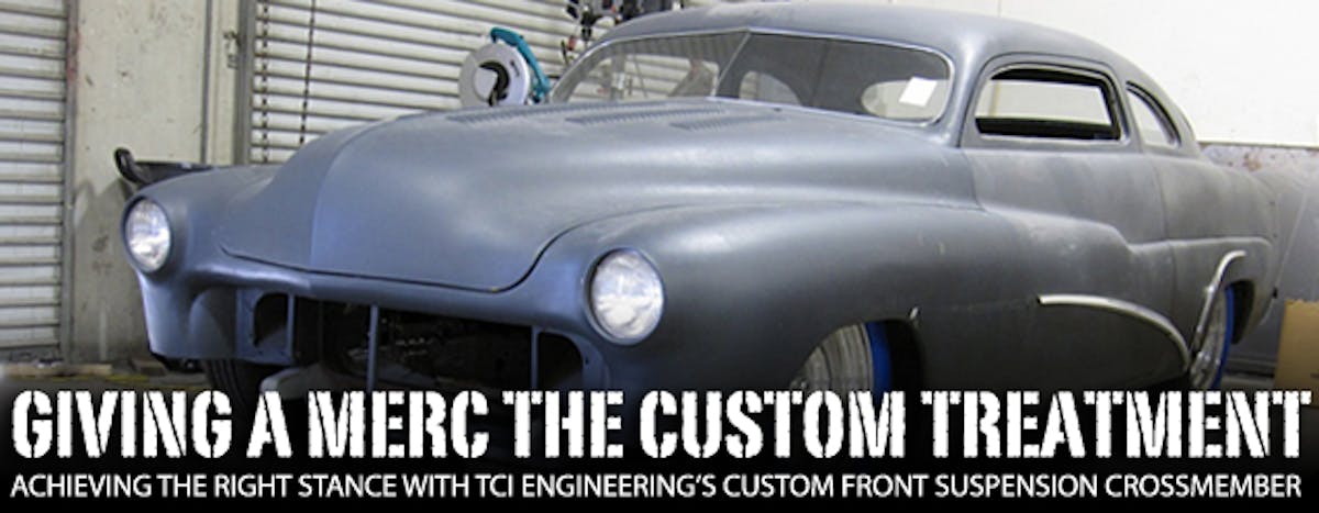 With the TCI suspension in place and air bags added, this chop top, 1951 Merc now has the desired, slammed-to-the-ground, eye-catching stance that lead-sledders desire. These heavy behemoth cars need and require a strong, safe suspension and brakes, which can all be accomplished on a budget using this replacement crossmember method! Check out the rest of the article below and follow along to view a typical shop installation.