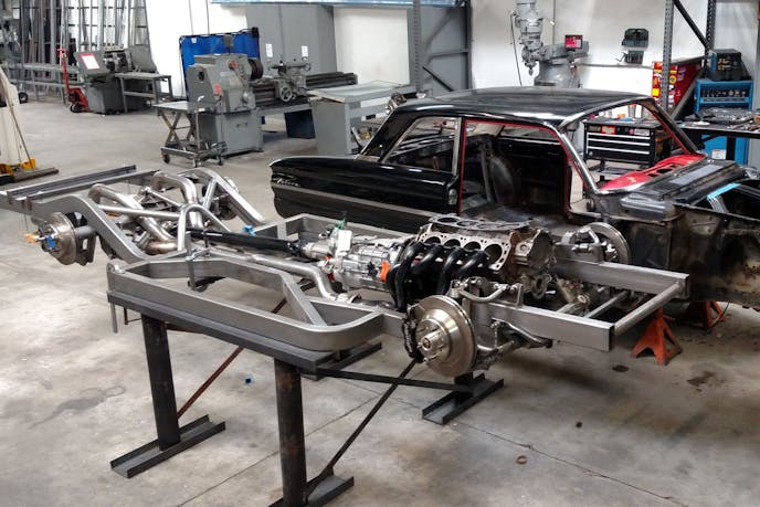 “So many of these original chassis aren’t really in good enough condition to be worthwhile to try to salvage, and we have the opportunity to vastly improve upon the original design. What we do is design a brand new platform that is much more rigid than the original chassis and utilize modern-day types of suspension, which in turn provides ride and handling qualities that most people are expecting when they build a hot rod or muscle car.”