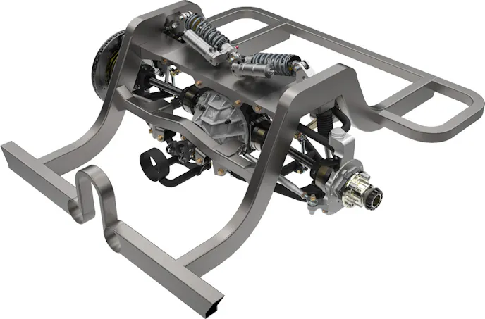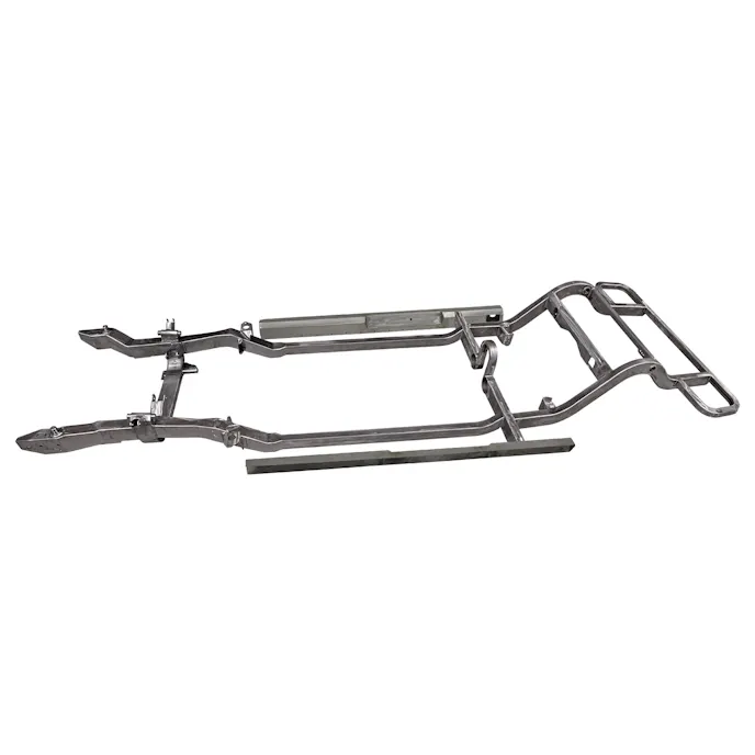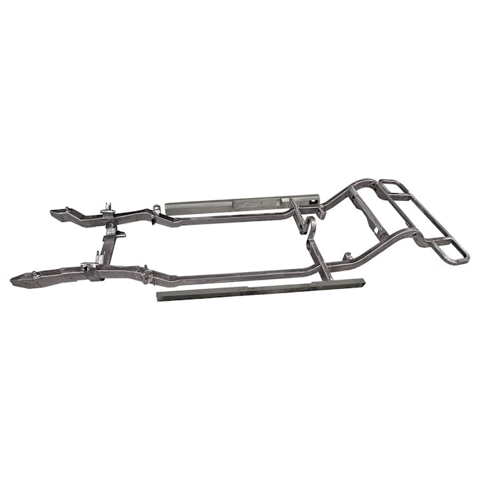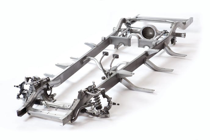A lot of these vehicles originally just used a stamped-steel-chassis design that had rudimentary open-channel cross members, either riveted or spot-welded at the front and rear. There was very little between the front and rear suspension to make that frame rigid. It sort of relied on the body itself to provide any sort of rigidity, and the chassis was really just there to mount the engine and suspension points. — Art Morrison