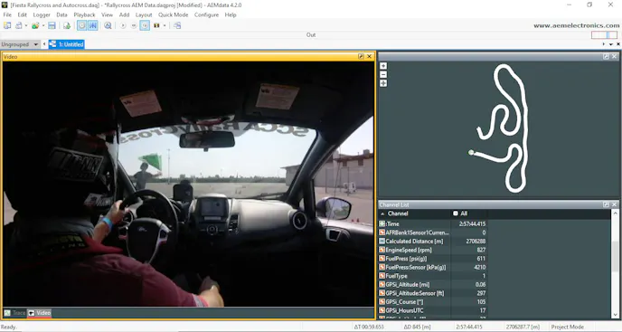 We have been playing with our AEM Electronics’ CD-5LG Carbon Logging Display with Internal GPS all season long with our Ford Fiesta ST project car in the Way of the FiST series for Ford Muscle. Mostly we have been using it for its outstanding programmable shift light during autocross and rallycross events. But besides the gauges that the digital dash displays it is also collecting data about the vehicle through the OBDII port and GPS data from the antenna on the roof. We could use this data with videos.