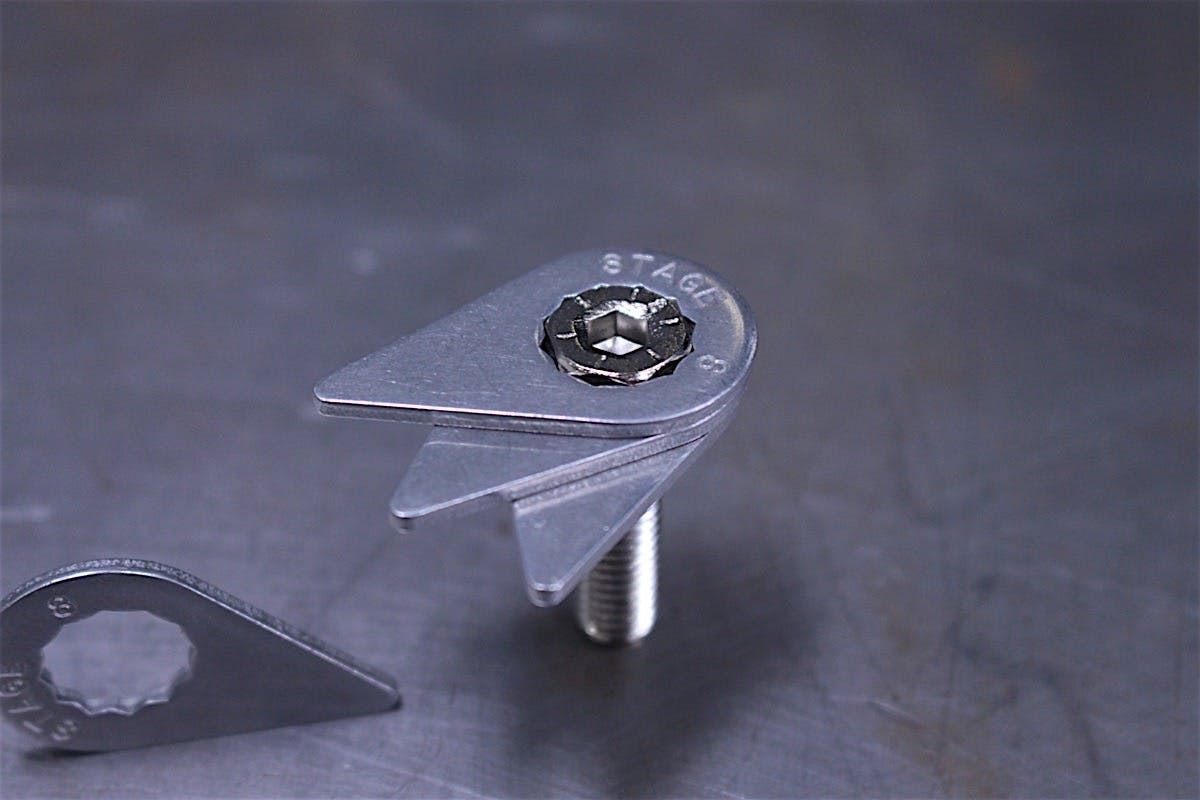This idea of rotating the 12-point hole was ingenious, because we noticed a couple of times that the locking retainer couldn’t rotate to the next position. We asked Stage 8’s Glenn Thompson if it was acceptable to turn a torqued bolt slightly further to accommodate our need.