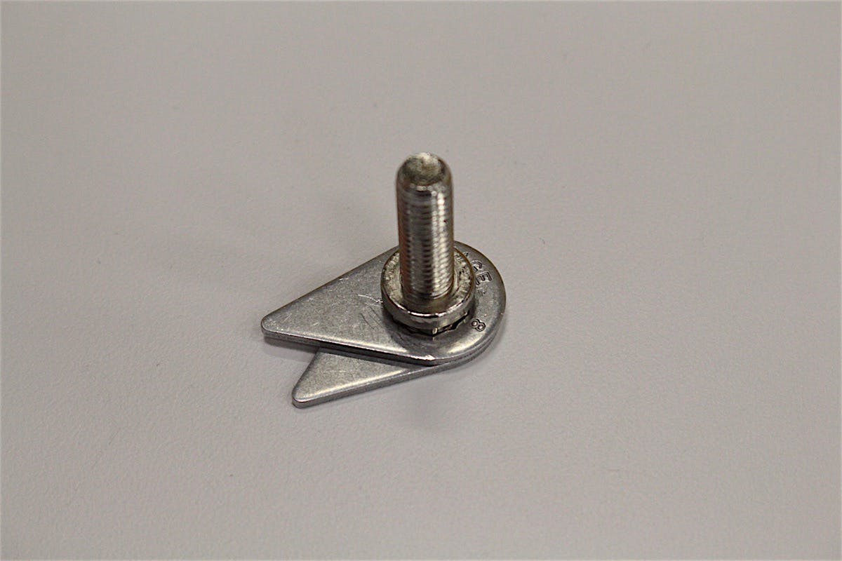 The locking retainer is designed to rest against any fixed component to prevent the bolts from backing out due to vibrations or temperature differences. It is easily installed by simply rotating it until it lines up with a fixed stop point.