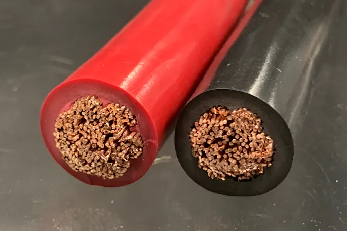 Powermaster recommends using a multi-strand, copper cable with professionally crimped terminals. As for what gauge you should use, that depends on the battery location and alternator output. If the battery is under the hood and 2-feet away from the alternator, you can use a 4- or 6-gauge cable, however for trunk mounted batteries, it’s time to step up to a 2- or 0-gauge cable.