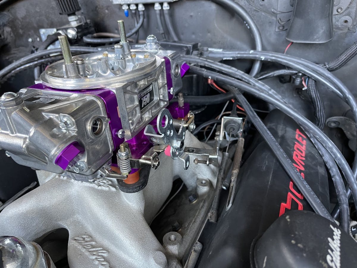 We took delivery of our 750 Race Series carb and got to work installing the new unit. First things first, we disconnected the battery and throttle linkage and then broke the fuel and vacuum lines free. Then we unbolted the old carb and set it aside. The installation took roughly 1-2 hours. After we cleaned up the site, we set the new carburetor on the intake manifold and bolted it down. Then we reconnected the battery, throttle linkage, fuel lines, and vacuum booster line. No need to wire up an electric choke because the Race Series design doesn’t have one. This does not require a high mechanical skill level to accomplish and utilizes common automotive tools as well.