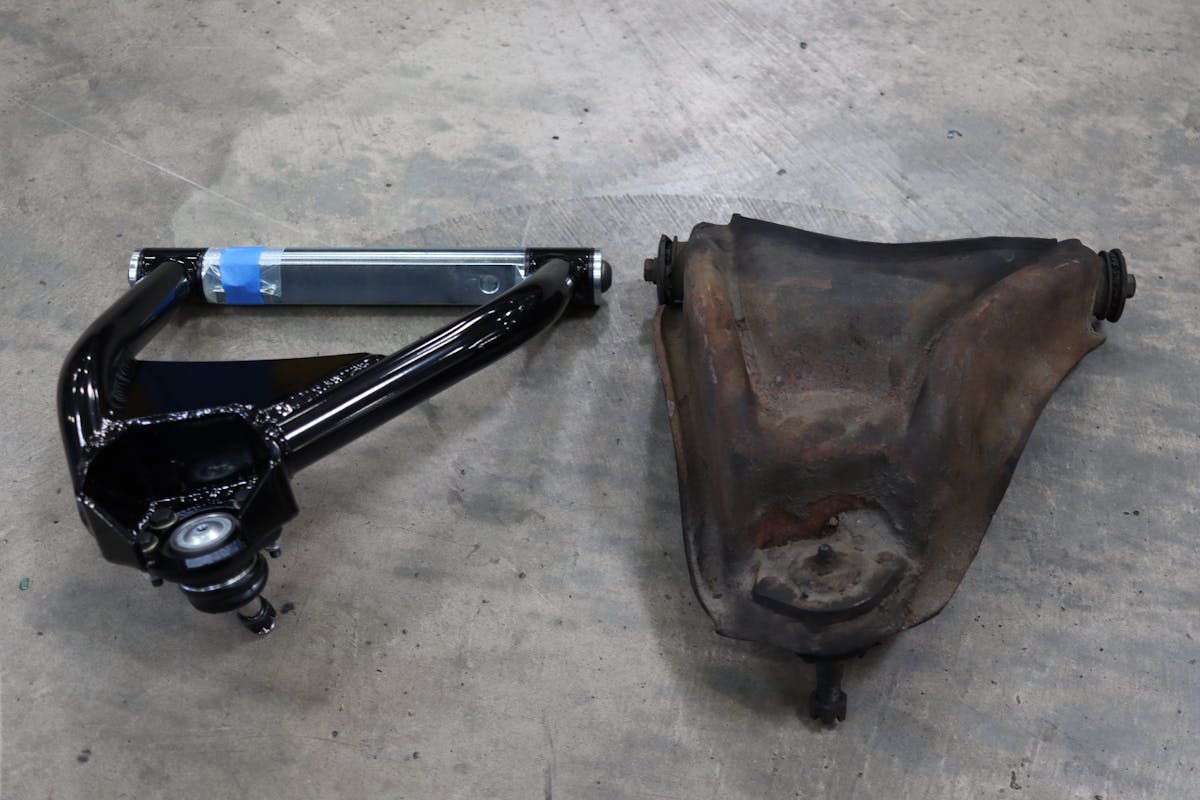 To say the bushings, ball joints, and tie rod ends were busted, cracked, and worn-out would be an understatement. You can see from the photos just how bad they’d gotten. They are almost 50 years old, after all. Nevertheless, it made the comparison all the more striking.