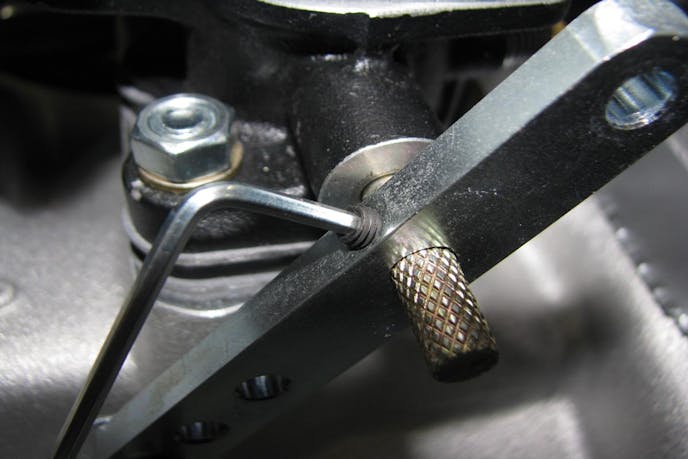 The Edelbrock progressive linkage is simple in its design, but allows for infinite adjustability. The Edelbrock 94 carbs' throttle shafts are generously long and knurled to allow for attaching a variety of linkages. We used a Lokar linkage to the throttle pedal.