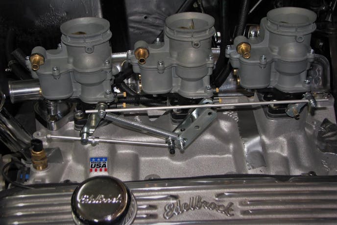 Just as adding carbs is a good way to increase the amount of fuel (and air) available to our engine, knowing our engine’s limitations and not reaching for the biggest and the baddest option is also a good way to avoid over-fueling. We asked Smitty Smith at Edelbrock about running only three carbs, “We have consumers that have these on small-block Chevys from 265 cu in up to 383 strokers, like this one. We even offer our X-1 intake for the SB Chevys that utilize six Model 94 carburetors with straight linkage on all six at once.”