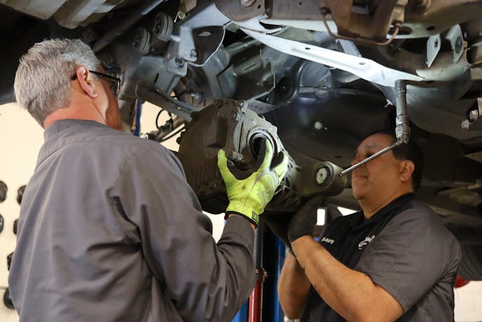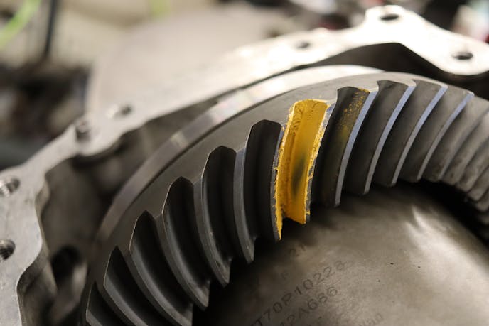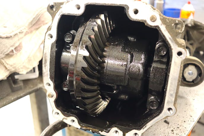 With all the accoutrements removed, we began the disassembly of the rearend housing. Up until this point, the Camaro was looking great for its age. The bushings didn’t look too bad, and the undercarriage was surprisingly clean. It was only when we opened the differential that we saw the gears were rather aged. Still, the wear pattern was even… just, worn. In fact, the pattern was showing a wear amount of 0.010 inch, while American Axle’s recommended maximum is 0.004 inch.